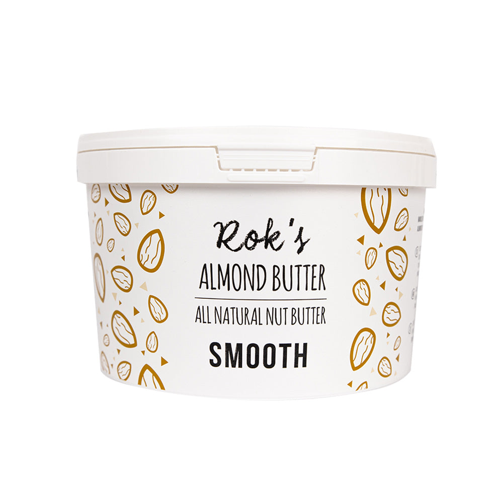 ROK'S MANDELJEVO MASLO, 2000g - SESTAVINE: praženi MANDLJI 100%. Lahko vsebuje sledi DRUGIH OREŠKOV, SOJE in SEZAMOVIH SEMEN. HRANILNA VREDNOST NA 100g - Energijska vrednost: 2636 kJ / 637 kcal | Maščoba: 55,2 g | od tega nasičene maščobe: 5,2g | Ogljikovi hidrati: 6g | od tega sladkorji: 4,7g | Prehranske vlaknine: 8,5 g | Beljakovine: 24,9 g | Sol: 0g. UPORABA: Uporabno najmanj do datuma označenega na ovitku; serije oz. lot (L) ali (LOT) je na embalaži. Shranjujte pri 25 °C, v hladnem in suhem prostoru. Neto teža 2000g. Proizvaja Rok's nut butter d.o.o., Goričica pri Ihanu 19/b, 1230 Domžale, Sloven