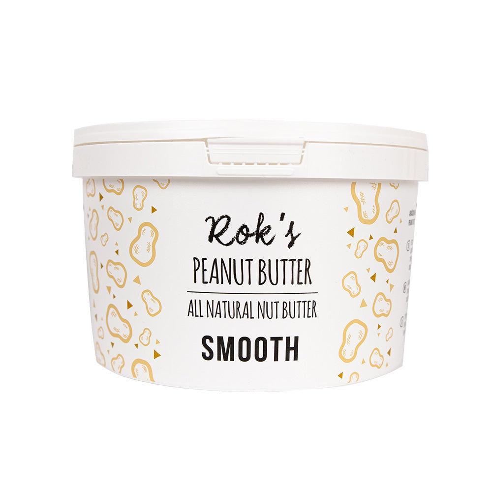 ROK'S PEANUT BUTTERSMOOTH, 2000g - SESTAVINE: PRAŽENI ARAŠIDI 100%. Lahko vsebuje sledi OREŠKOV, SOJE in SEZAMOVIH SEMEN. HRANILNA VREDNOST NA 100g - Energijska vrednost: 2547 kJ / 614 kcal | Maščoba: 48,2 g | od tega nasičene maščobe: 6,2 g | Ogljikovi hidrati: 18,2 g | od tega sladkorji: 8,6g | Prehranske vlaknine: 6,4 g | Beljakovine: 23,7 g | Sol: 0g. UPORABA: Uporabno najmanj do datuma označenega na pokrovčku; serija ali lot (L) ali (LOT) se nahaja na embalaži. Hraniti pri temperaturi do 25°C, v hladnem in suhem prostoru. Neto količina 2000g. Proizvaja Rok's nut butter d.o.o., Goričica pri Ihanu 19/b, 1230 Domžale, Slovenija.