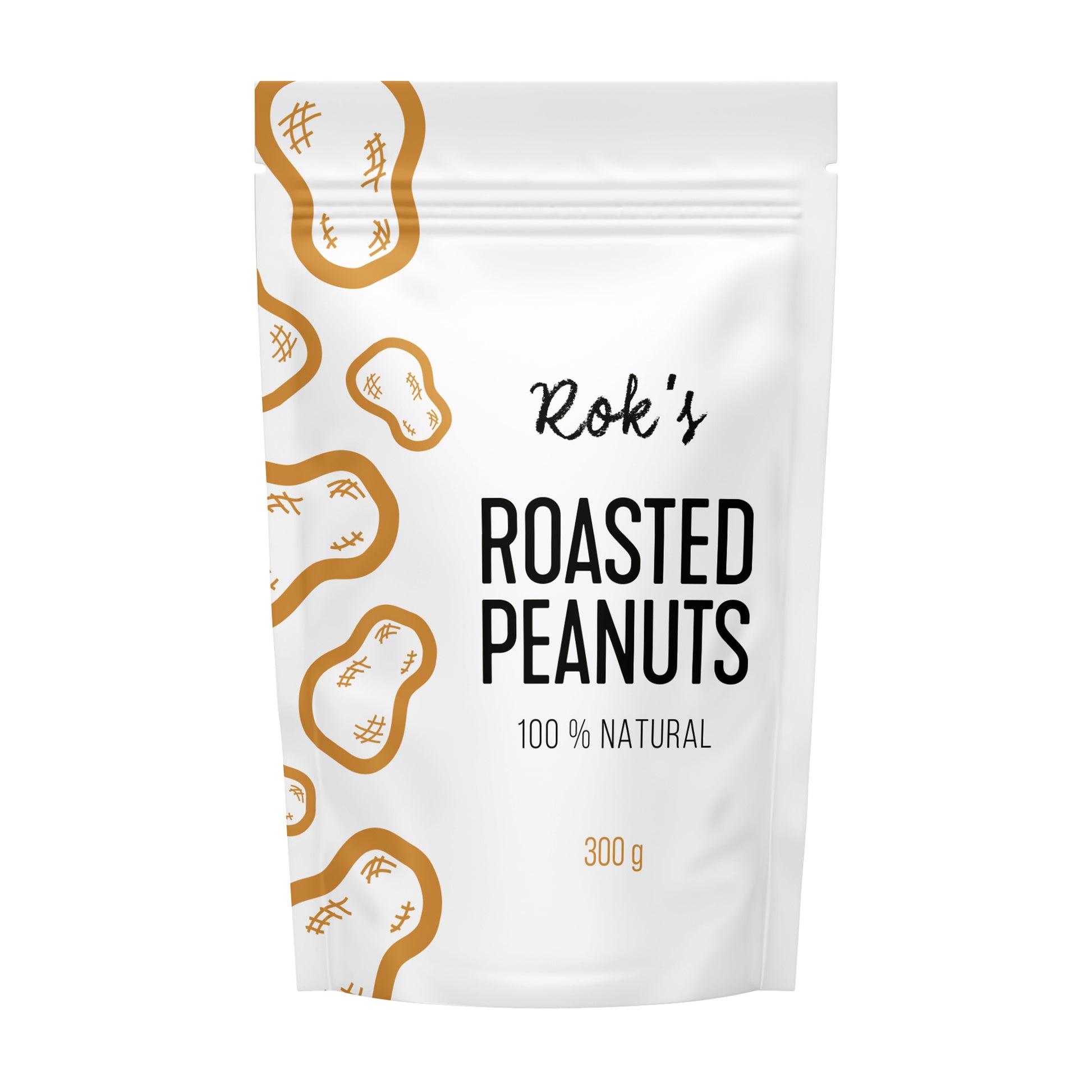 ROK'S praženi arašidi 300g - SESTAVINE: praženi ARAŠIDI 100%. Lahko vsebuje sledi OREŠKOV, SOJE in SEZAMOVIH SEMEN. HRANILNA VREDNOST NA 100g - Energijska vrednost: 2547 kJ / 614 kcal | Maščoba: 48,2 g | od tega nasičene maščobe: 6,2 g | Ogljikovi hidrati: 18,2 g | od tega sladkorji: 8,6g | Prehranske vlaknine: 6,4 g | Beljakovine: 23,7 g | Sol: 0g. UPORABA: Proizvaja Rok's nut butter d.o.o., Goričica pri Ihanu 19/b, 1230 Domžale, Slovenija.
