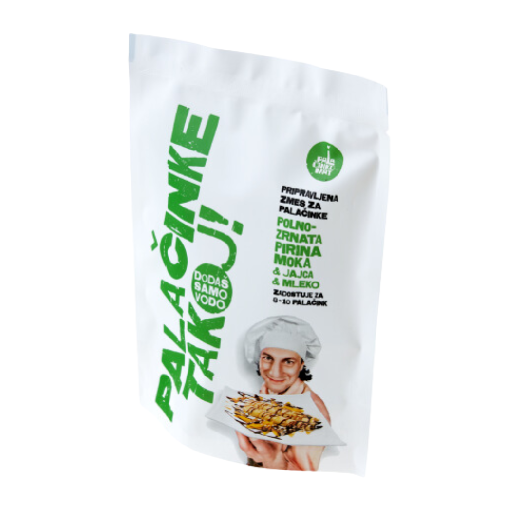 Naša mešanica za palačinke ne vsebuje umetnih dodatkov, konzervansov ali barvil—samo naravne sestavine za pristno izkušnjo ob vsakem obroku. Priprava je enostavna in hitra, kar vam omogoča, da enostavno pripravite sveže palačinke. Preprosto zmešajte mešanico z vodo ali mlekom, in že ste pripravljeni na peko.